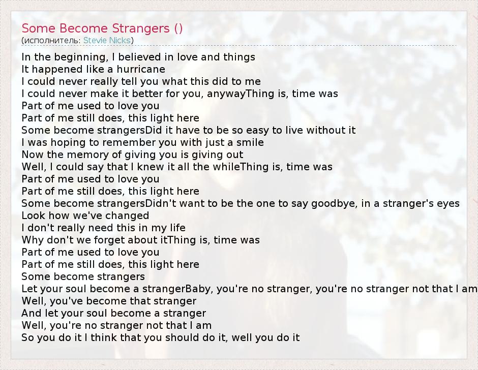 А как ты думаешь, о чем песня "Some Become Strangers ()" ?