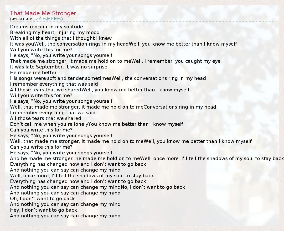 А как ты думаешь, о чем песня "That Made Me Stronger" ?