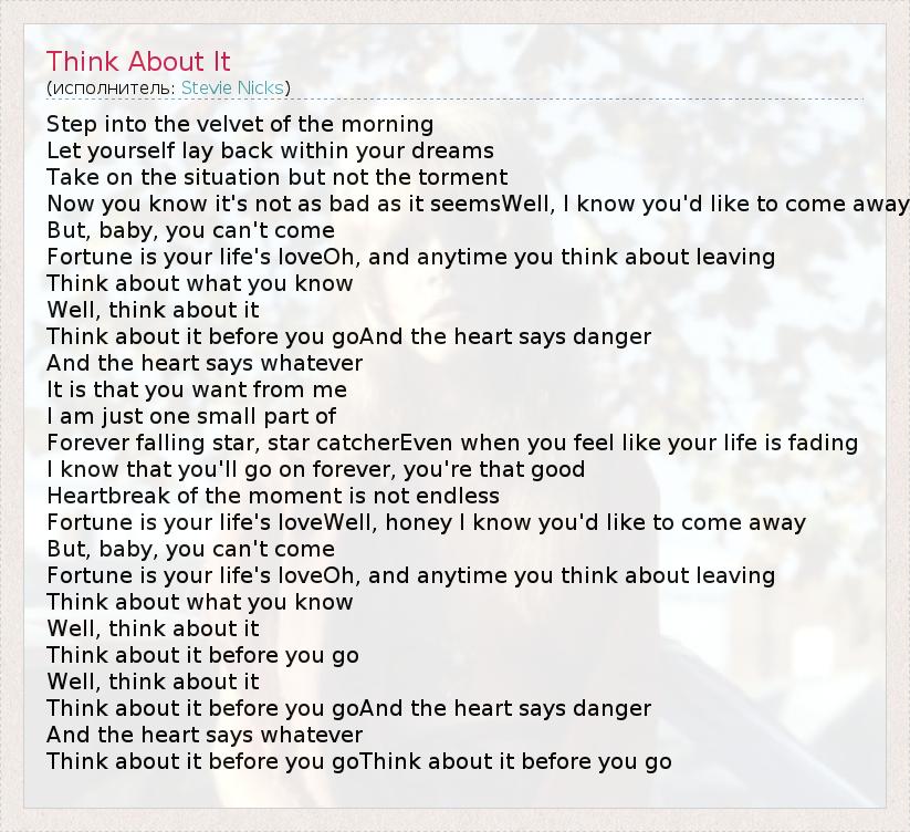 Это интересно:Стиви Никс родилась 26 мая 1948 года в Финиксе, штат Аризона, США. Она является одной из талантливейших и известнейших американских исполнительниц, обладательницей большого количества музыкальных премий и наград. Особую популярность получила благодаря работе в рамках группы Fleetwood Mac. Певица исполняет свои композиции в лирическом, но в то же самое время тяжелом стиле, тем самым создавая... продолжение