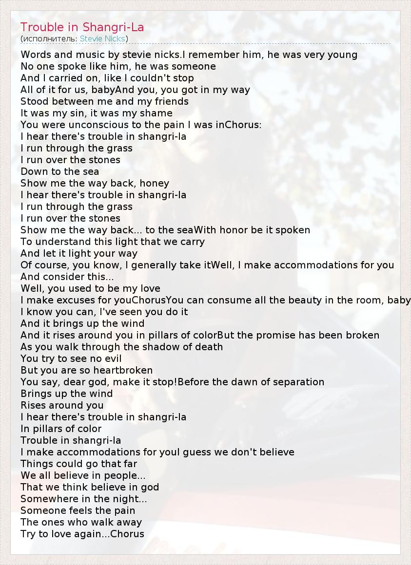 А как ты думаешь, о чем песня "Trouble in Shangri-La" ?