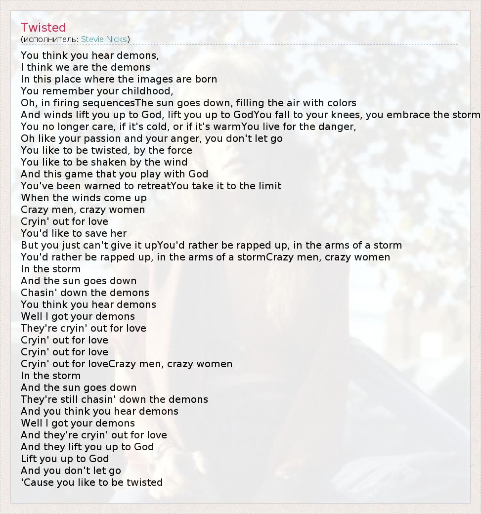 You'd rather be rapped up, in the arms of a stormCrazy men, crazy women