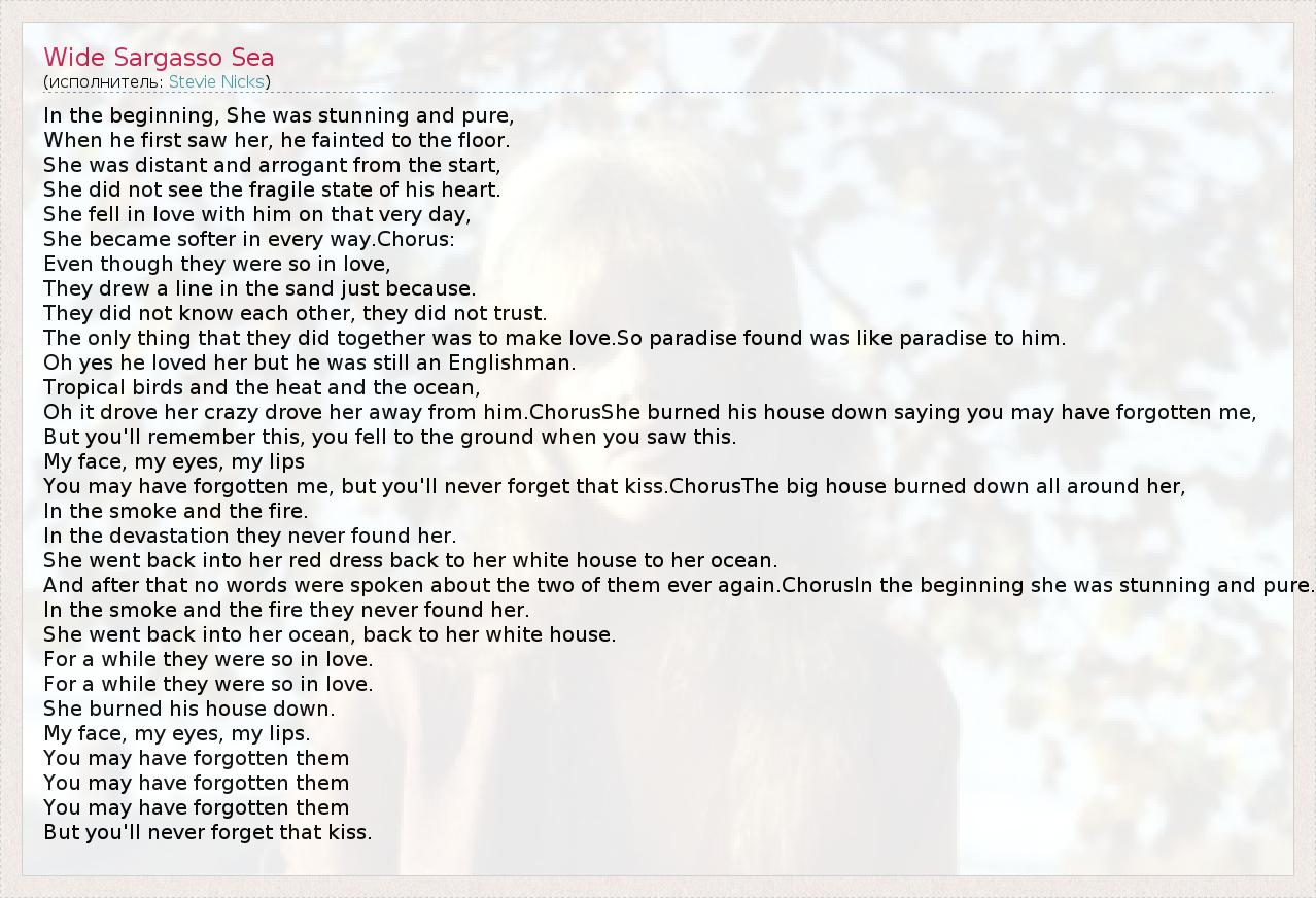 А как ты думаешь, о чем песня "Wide Sargasso Sea" ?