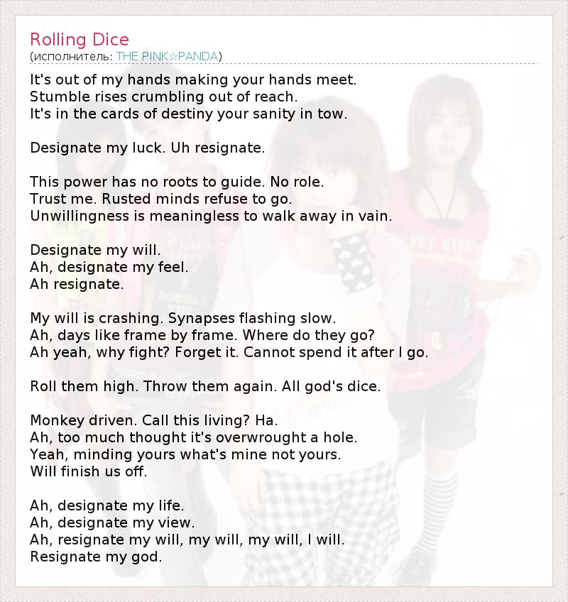 А как ты думаешь, о чем песня "Rolling Dice" ?
