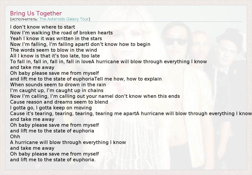 А как ты думаешь, о чем песня "Bring Us Together" ?