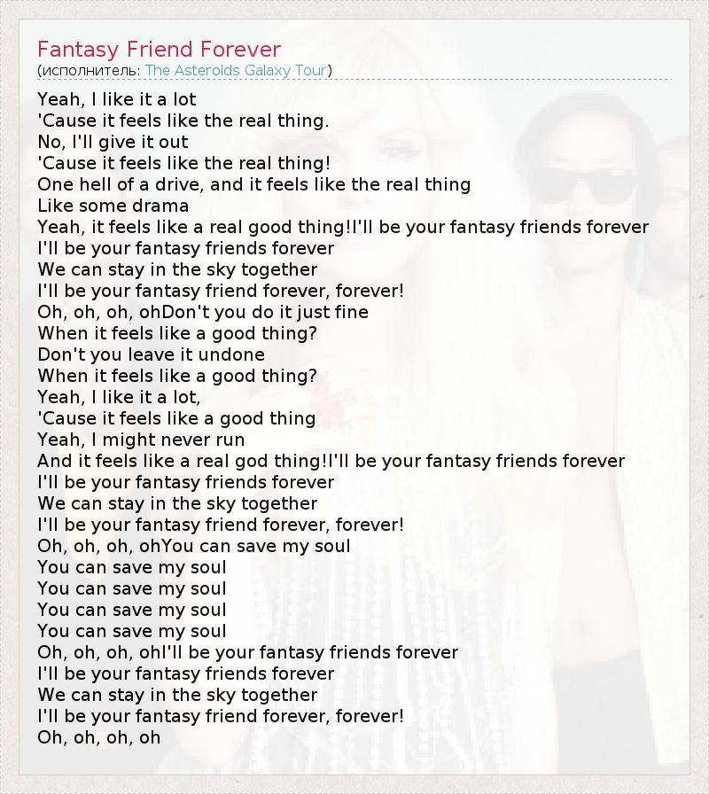 And it feels like a real god thing!I'll be your fantasy friends forever
