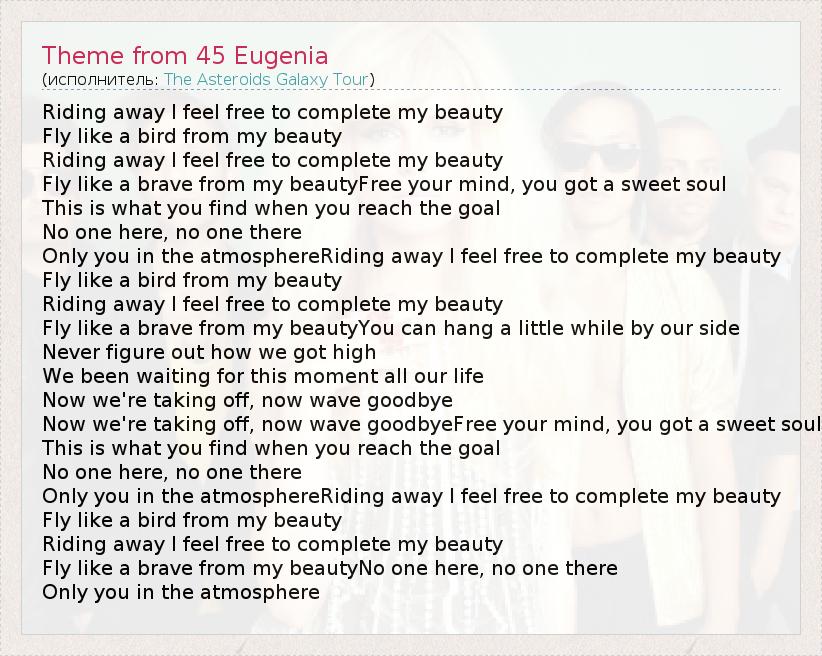 А как ты думаешь, о чем песня "Theme from 45 Eugenia" ?