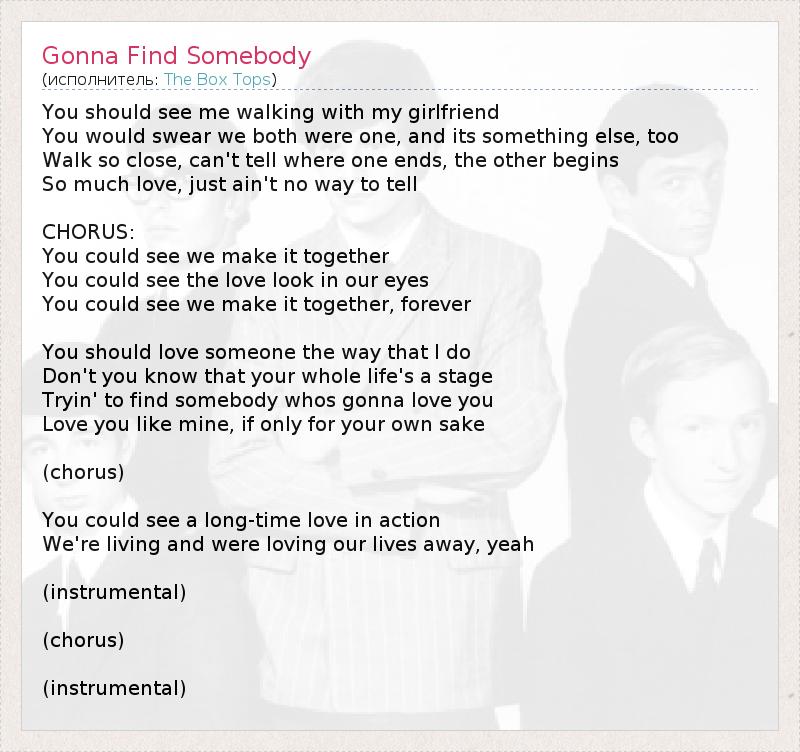 А как ты думаешь, о чем песня "Gonna Find Somebody" ?