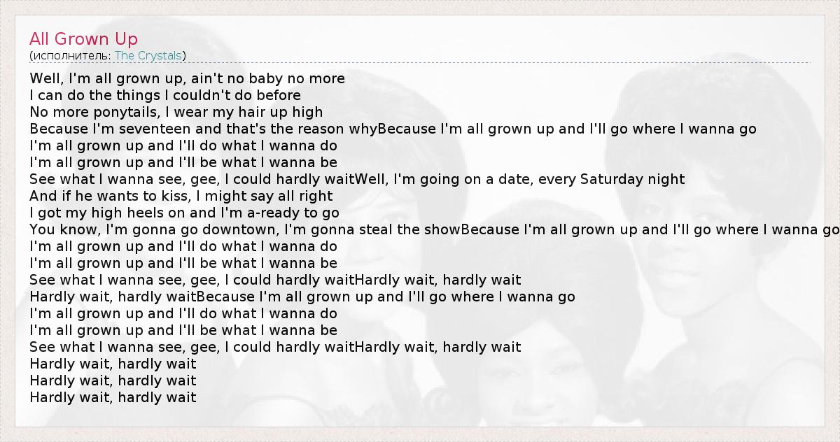 А как ты думаешь, о чем песня "All Grown Up" ?