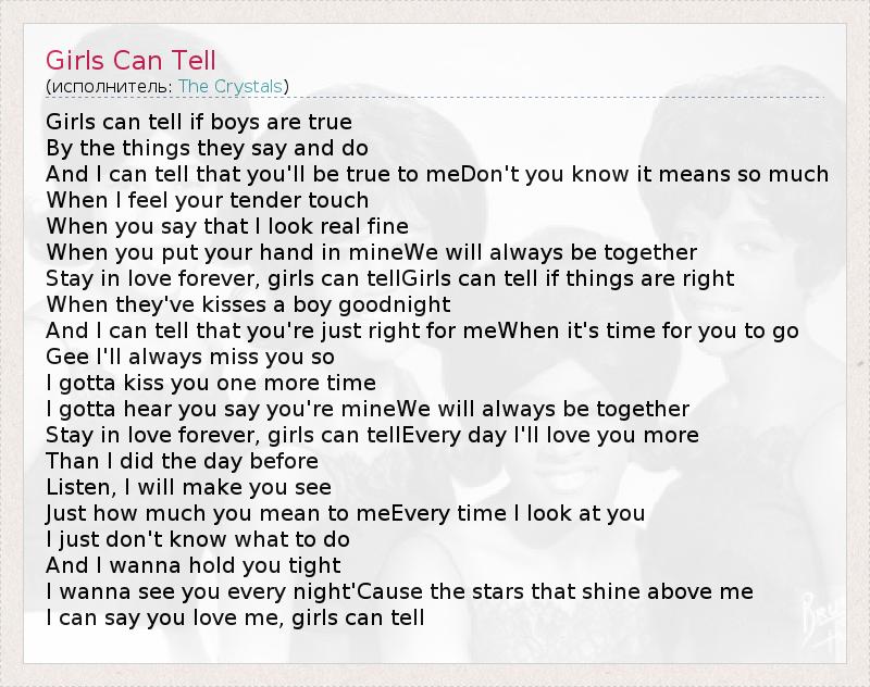 А как ты думаешь, о чем песня "Girls Can Tell" ?
