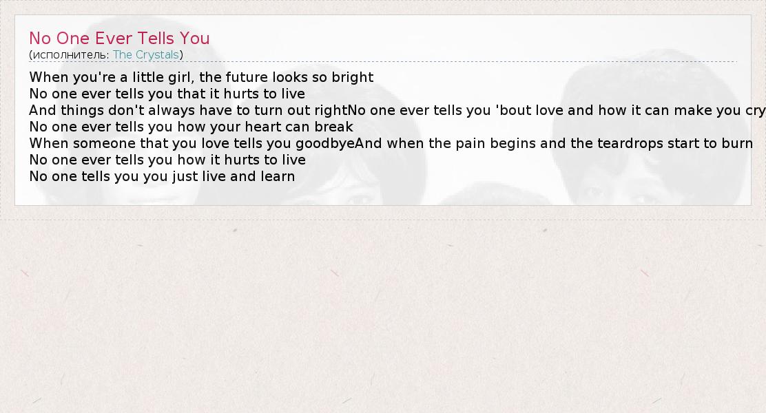 А как ты думаешь, о чем песня "No One Ever Tells You" ?