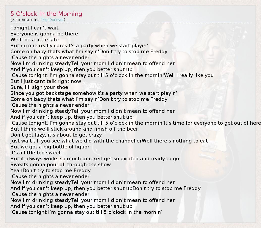 А как ты думаешь, о чем песня "5 O'clock in the Morning" ?
