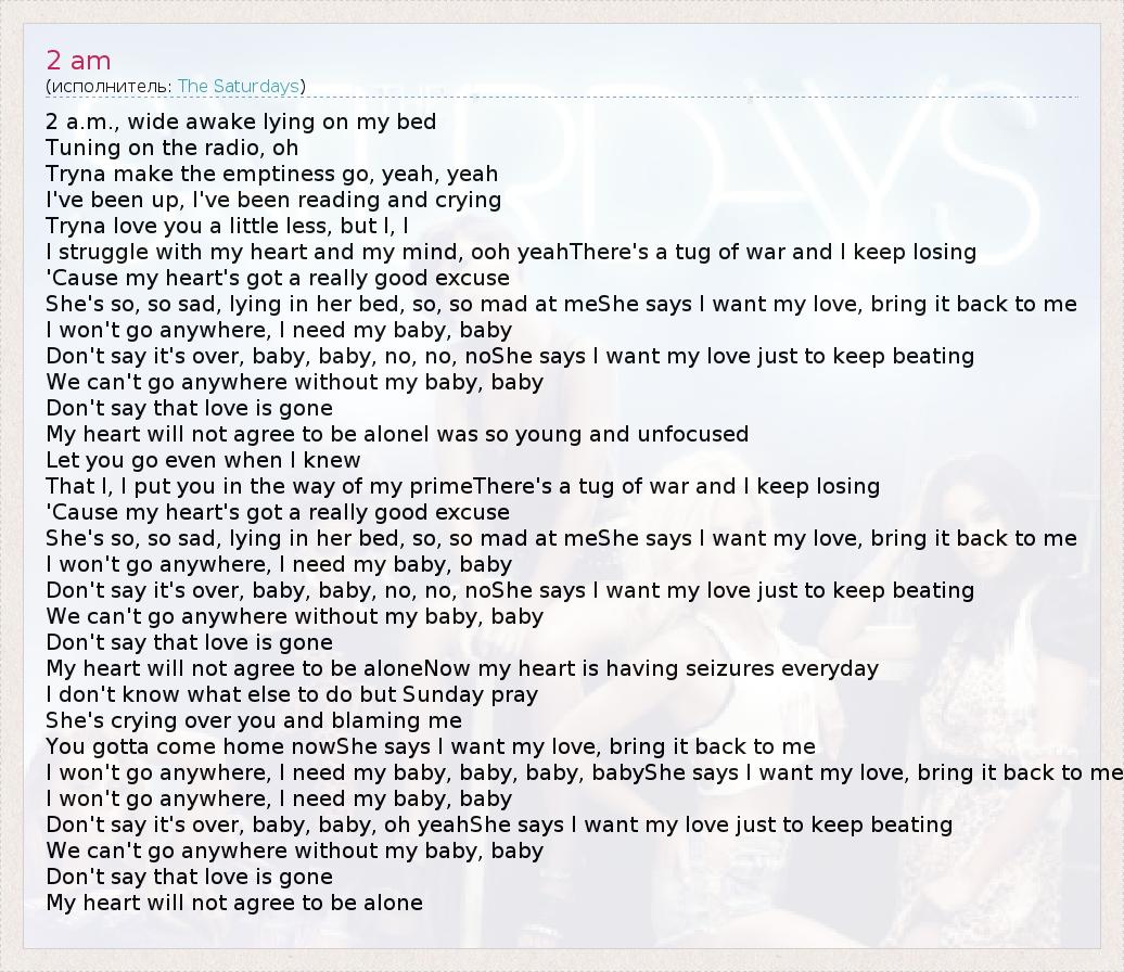 А как ты думаешь, о чем песня "2 am" ?