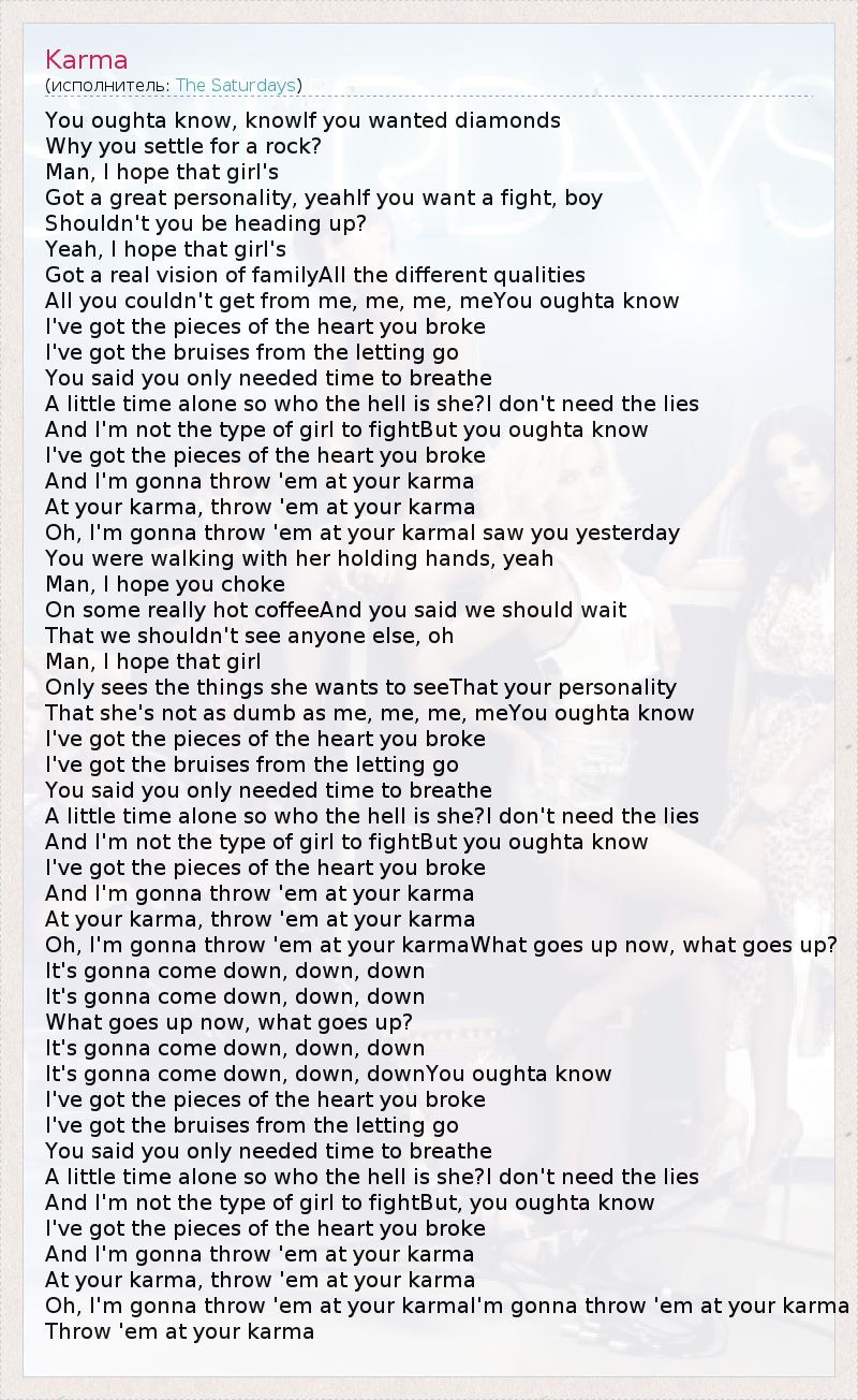 А как ты думаешь, о чем песня "Karma" ?