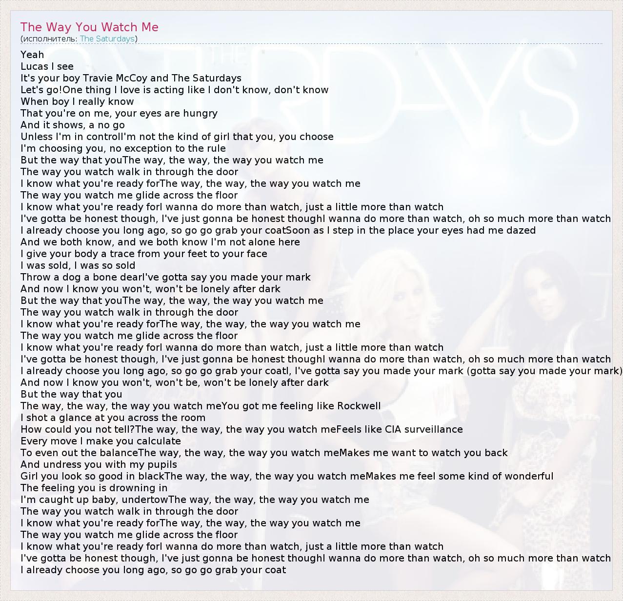 А как ты думаешь, о чем песня "The Way You Watch Me" ?
