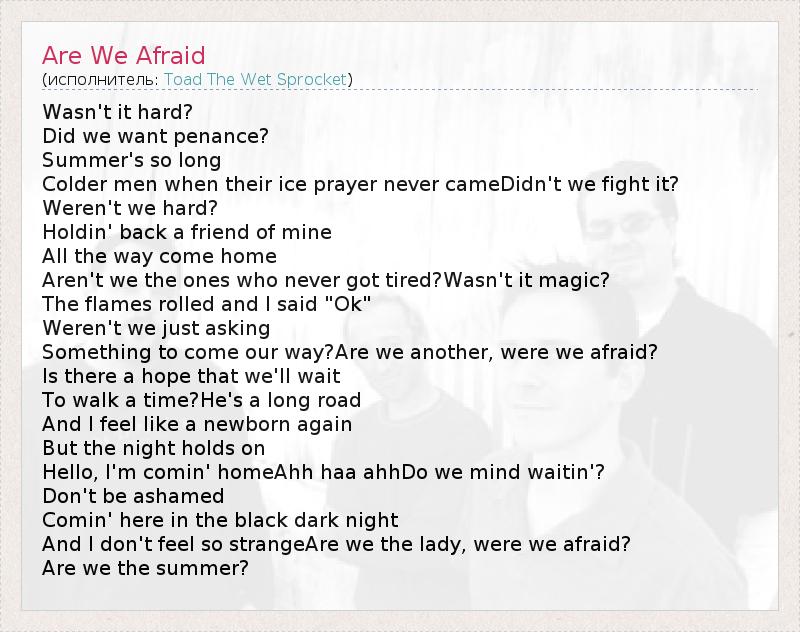 А как ты думаешь, о чем песня "Are We Afraid" ?