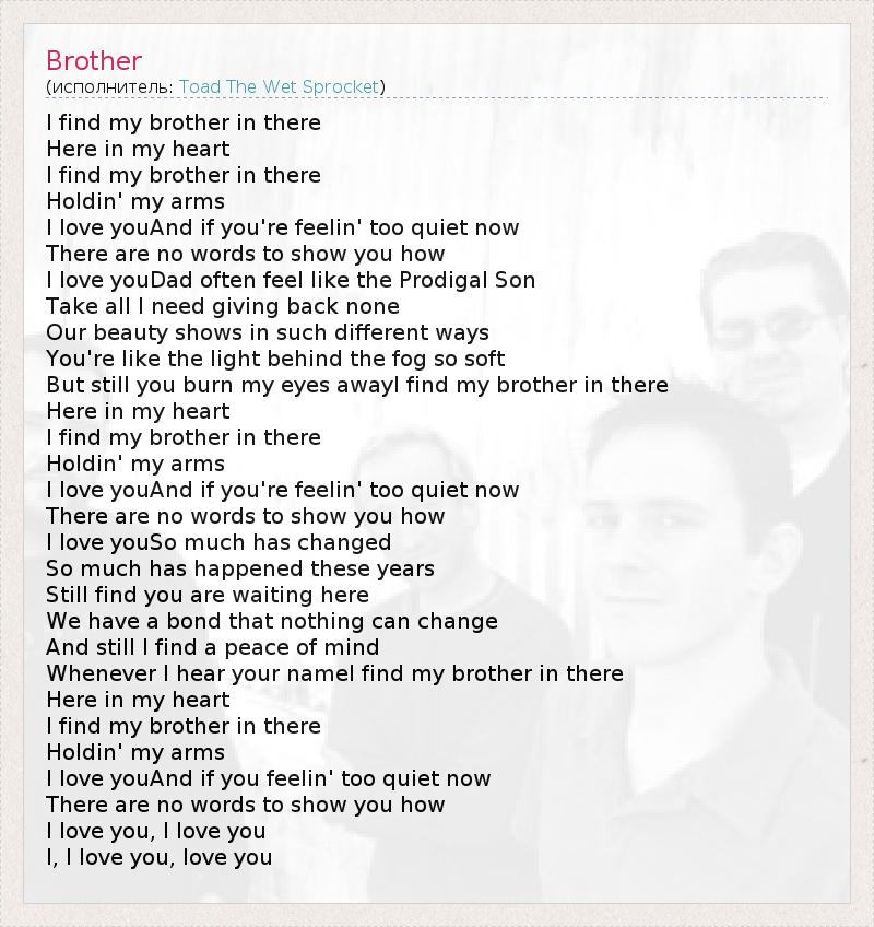 Whenever I hear your nameI find my brother in there
