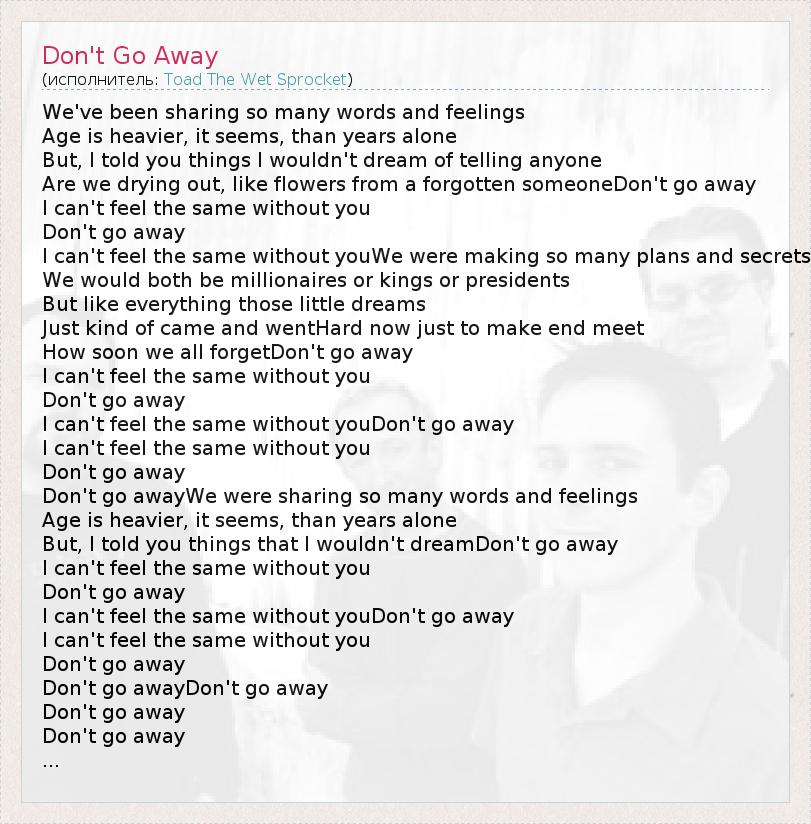 А как ты думаешь, о чем песня "Don't Go Away" ?