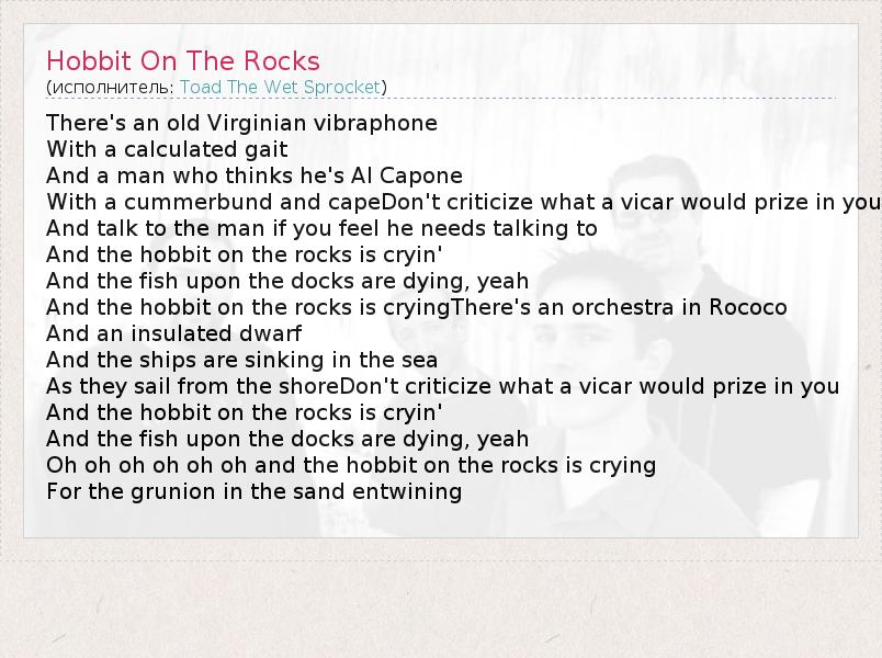 А как ты думаешь, о чем песня "Hobbit On The Rocks" ?