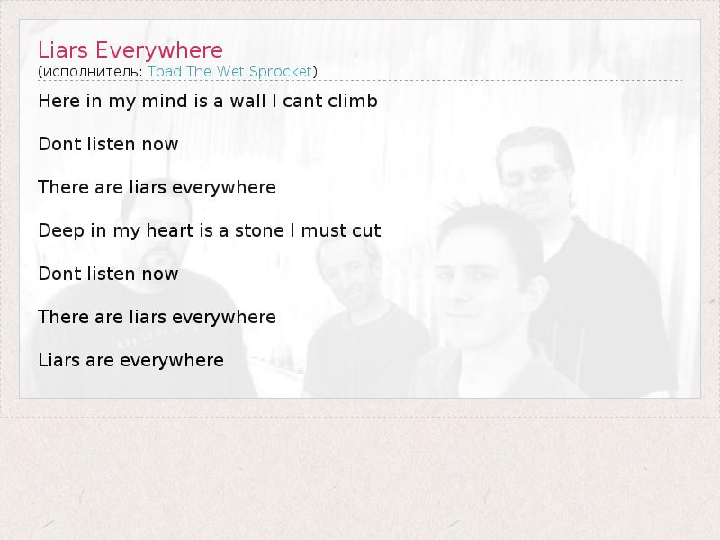 А как ты думаешь, о чем песня "Liars Everywhere" ?
