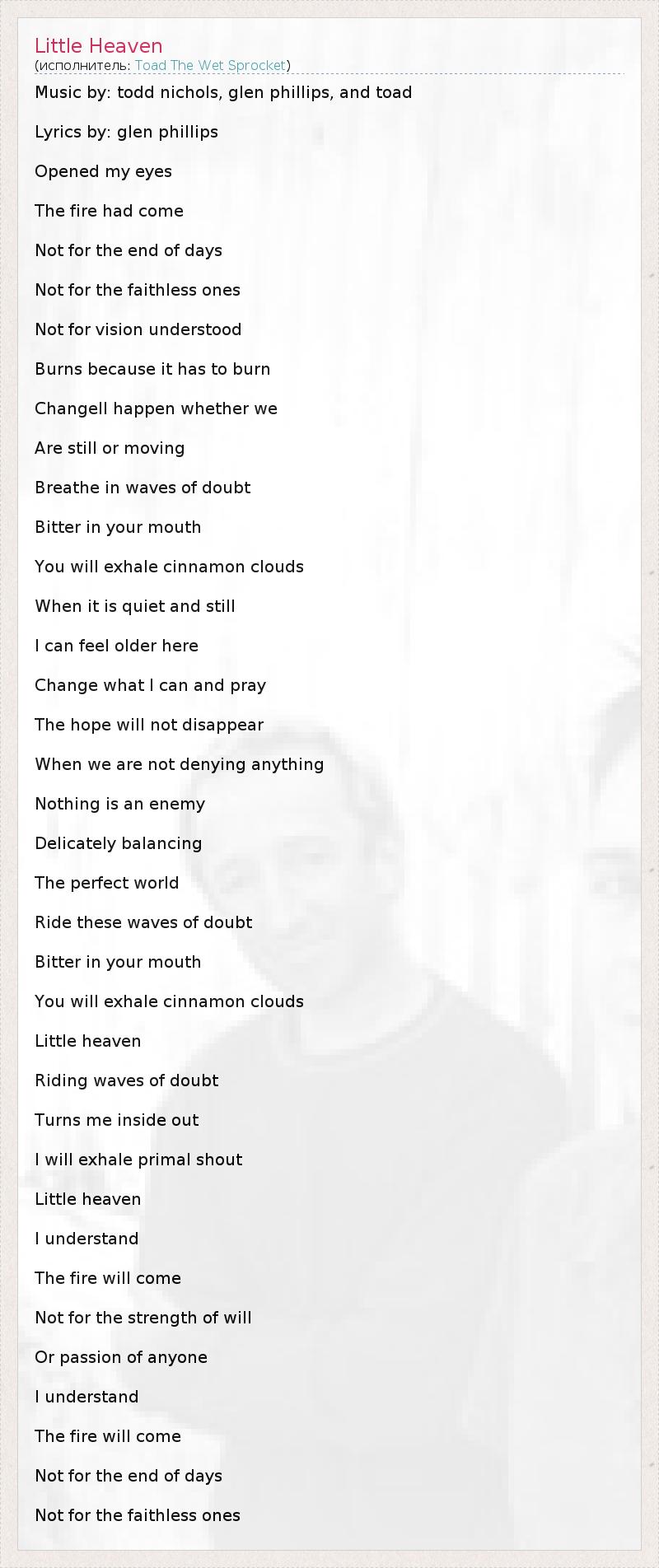 А как ты думаешь, о чем песня "Little Heaven" ?