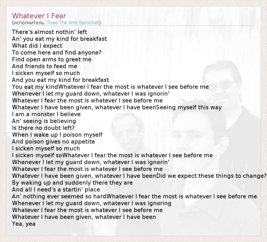 А как ты думаешь, о чем песня "Whatever I Fear" ?