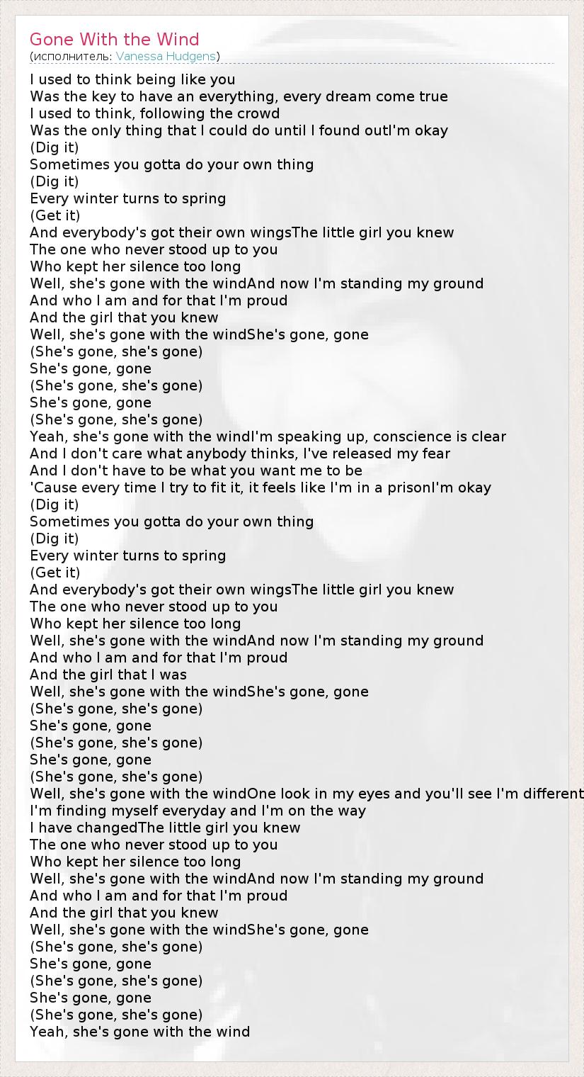 А как ты думаешь, о чем песня "Gone With the Wind" ?