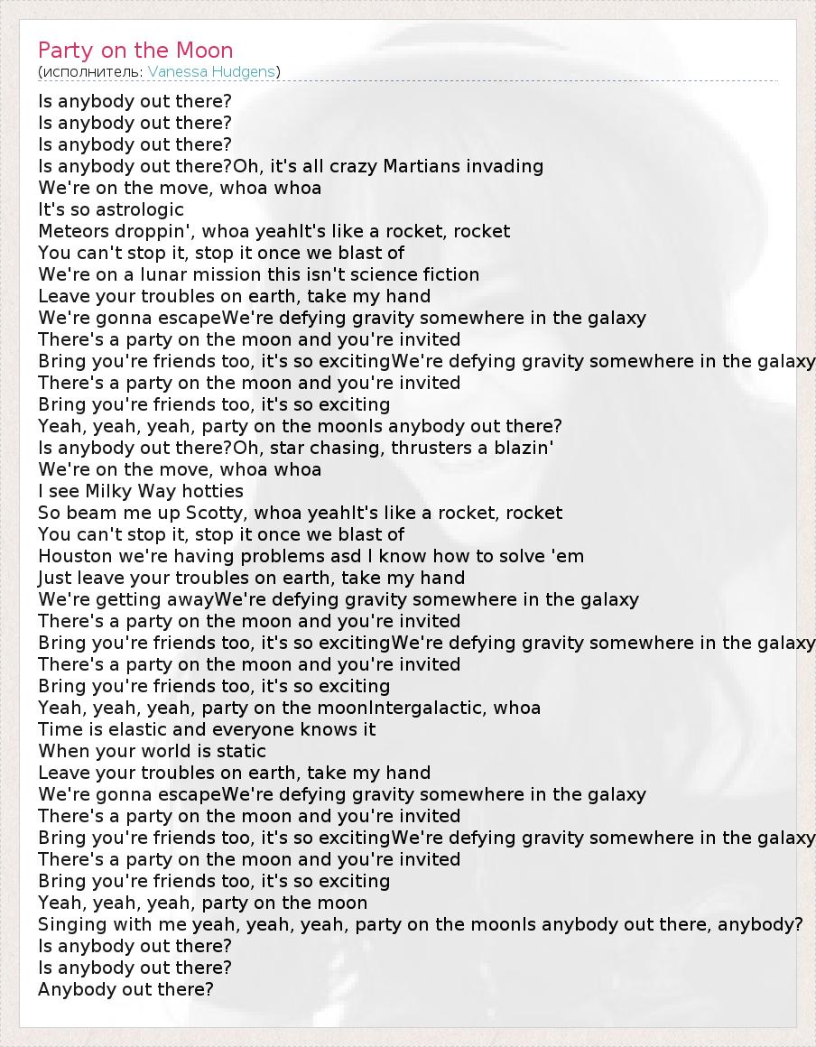 А как ты думаешь, о чем песня "Party on the Moon" ?