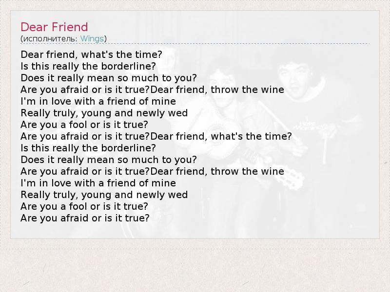 А как ты думаешь, о чем песня "Dear Friend" ?
