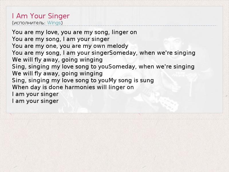 А как ты думаешь, о чем песня "I Am Your Singer" ?