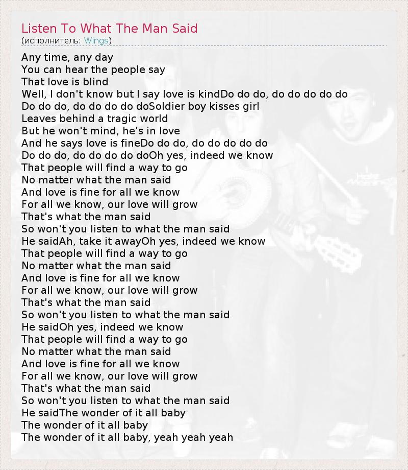 А как ты думаешь, о чем песня "Listen To What The Man Said" ?