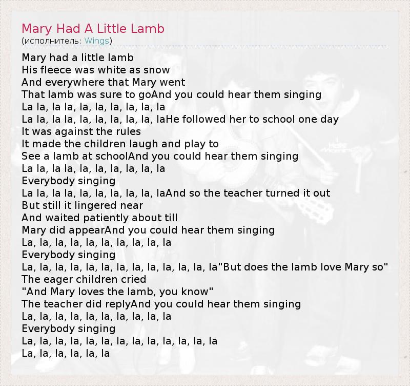 А как ты думаешь, о чем песня "Mary Had A Little Lamb" ?
