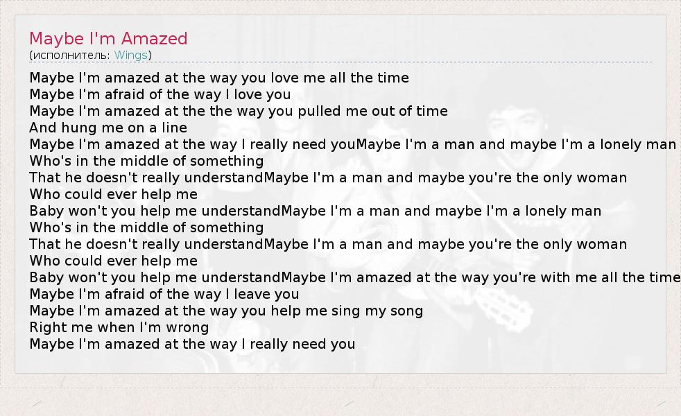 А как ты думаешь, о чем песня "Maybe I'm Amazed" ?