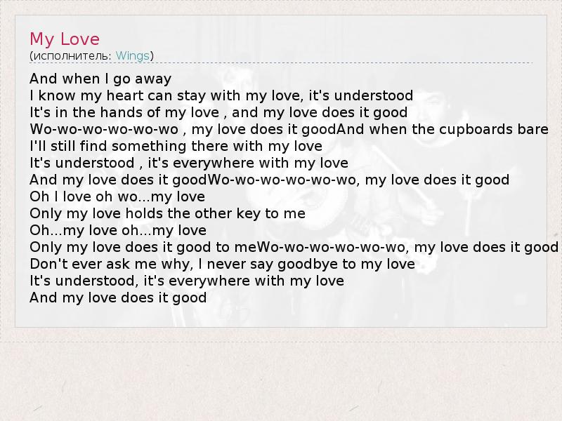 А как ты думаешь, о чем песня "My Love" ?