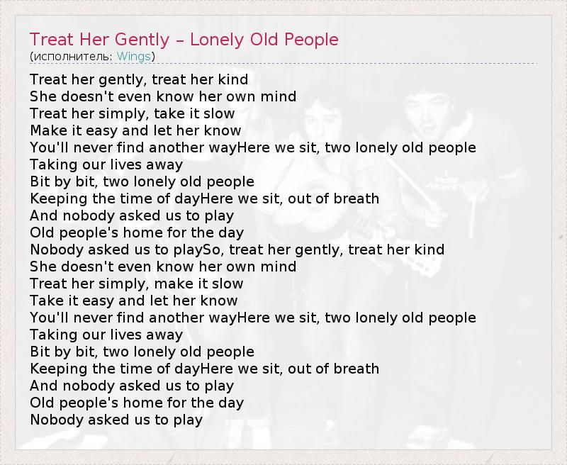 А как ты думаешь, о чем песня "Treat Her Gently – Lonely Old People" ?