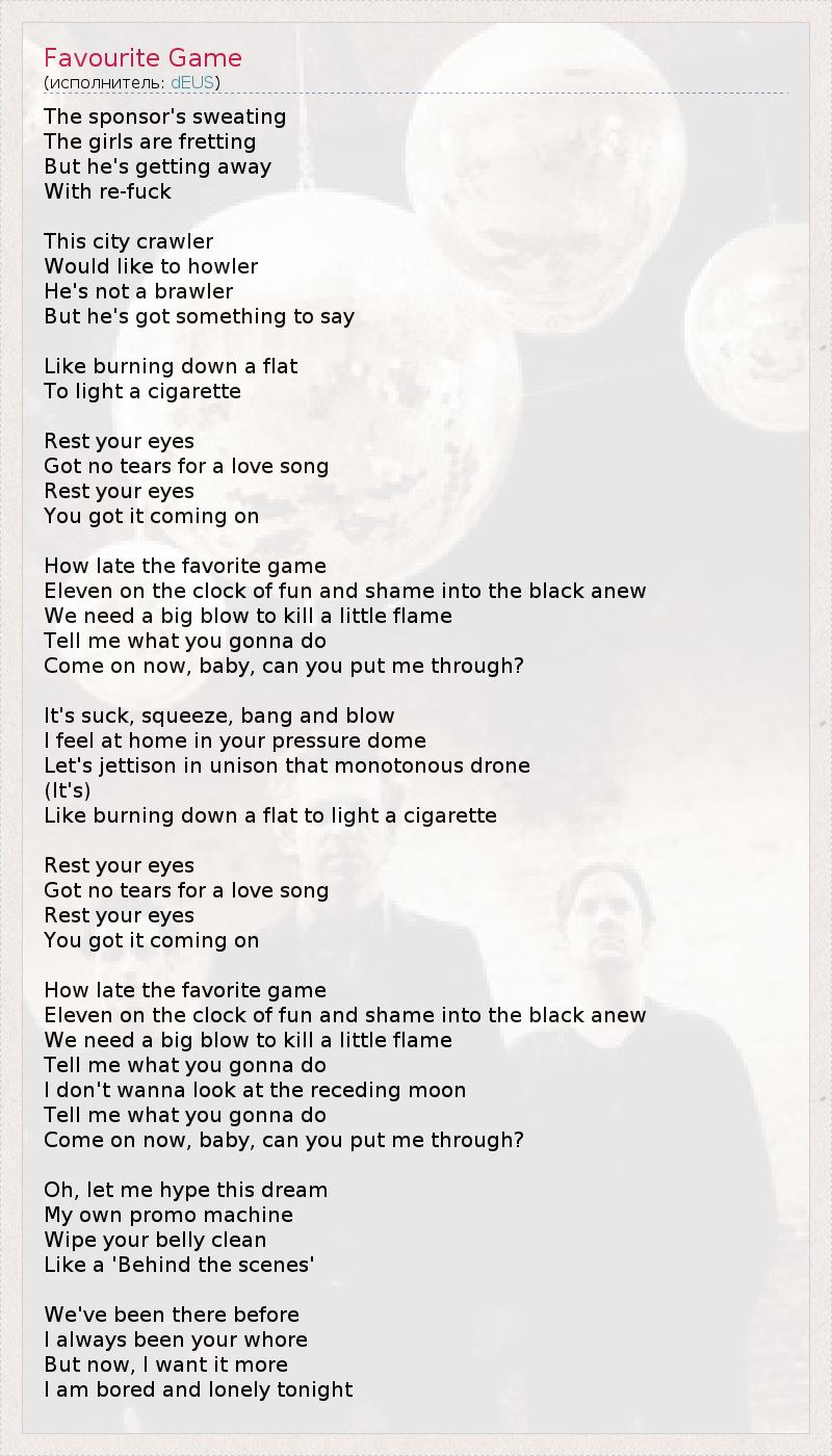 А как ты думаешь, о чем песня "Favourite Game" ?
