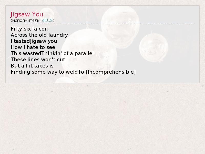 А как ты думаешь, о чем песня "Jigsaw You" ?