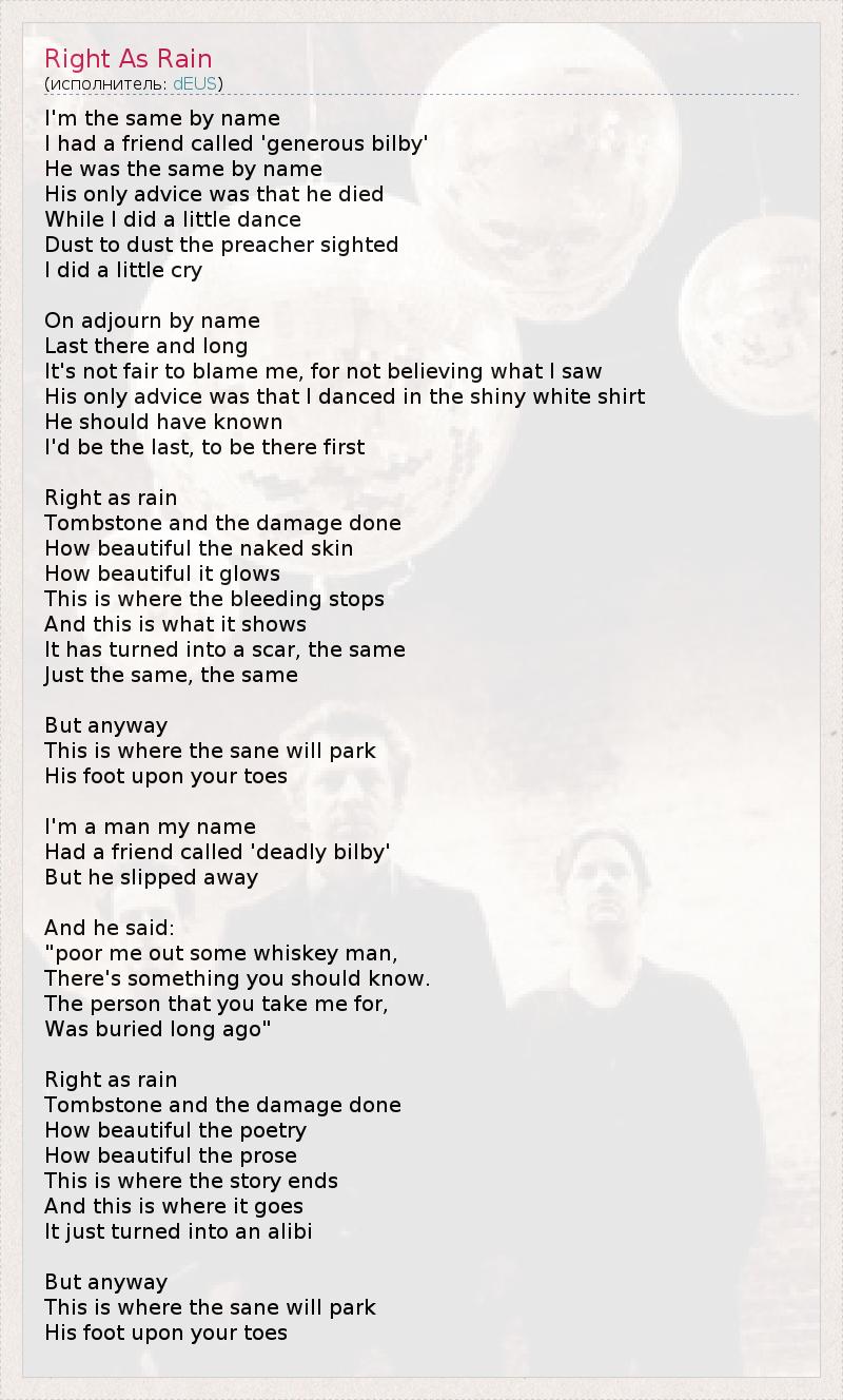 А как ты думаешь, о чем песня "Right As Rain" ?
