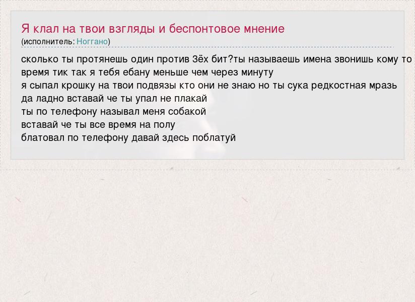 сколько ты протянешь один против 3ёх бит?ты называешь имена звонишь кому то время тик так я тебя ебану меньше чем через минуту я сыпал крошку на твои подвязы кто они не знаю но ты сука редкостная мразь да ладно вставай че ты упал не плакай ты по телефону называл меня собакой вставай че ты все время на полу блатовал по телефону давай здесь поблатуй