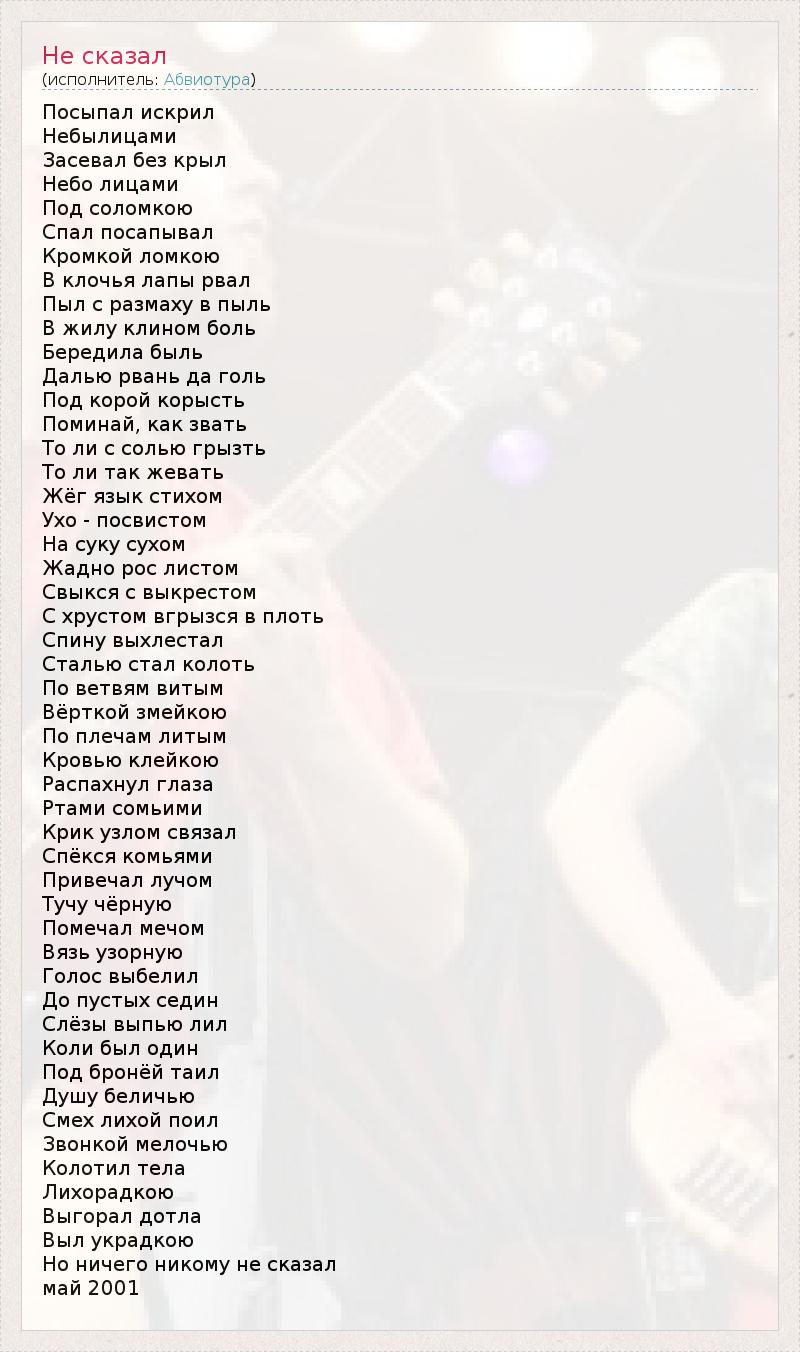 Это интересно:Стиль: этно-кор Состав: Павел Лапыгин – песни, голос, гитара, Андрей Шеремет – бас, компьютеры Роман Коробейников – соло гитара, хомус Александр Яковлев - барабаны, перкуссия Алексей Яковлев - звук Сайт:http://abviotura.ru ЖЖ:http://community.livejournal.com/abviotura/ О группе: АБВИОТУРА основана в г. Ростове-на-Дону... продолжение