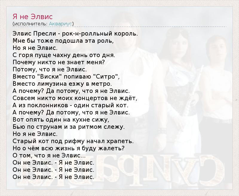 А как ты думаешь, о чем песня "Я не Элвис" ?