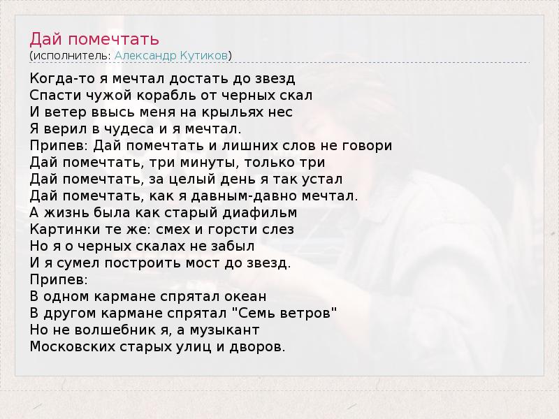 А как ты думаешь, о чем песня "Дай помечтать" ?