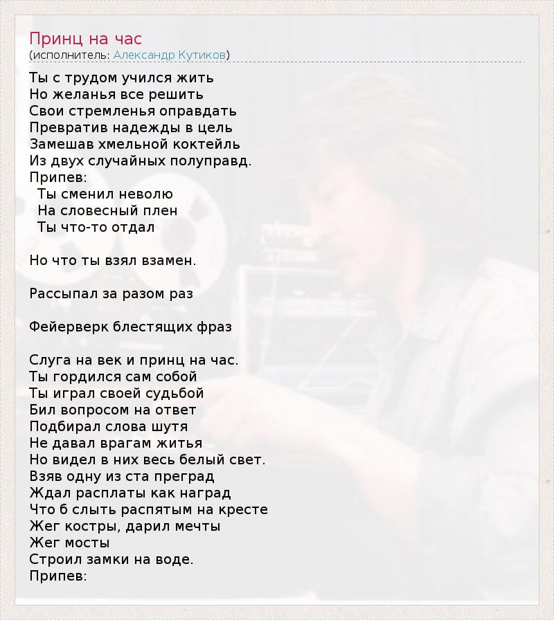 Это интересно:Александр Викторович Кутиков (13 апреля 1952, Москва) — композитор,бас-гитарист, вокалист. Заслуженный артист России. В группе «Машина времени» в 1971—1974 годах и с 1979-го до настоящего времени. Кутиков родился 13 апреля 1952 года в Москве, был сыном футболиста «Спартака», его детство прошло в Малом Пионерском переулке на Патриарших прудах. В юности занимался боксом. В «Машину времени» в 1971... продолжение