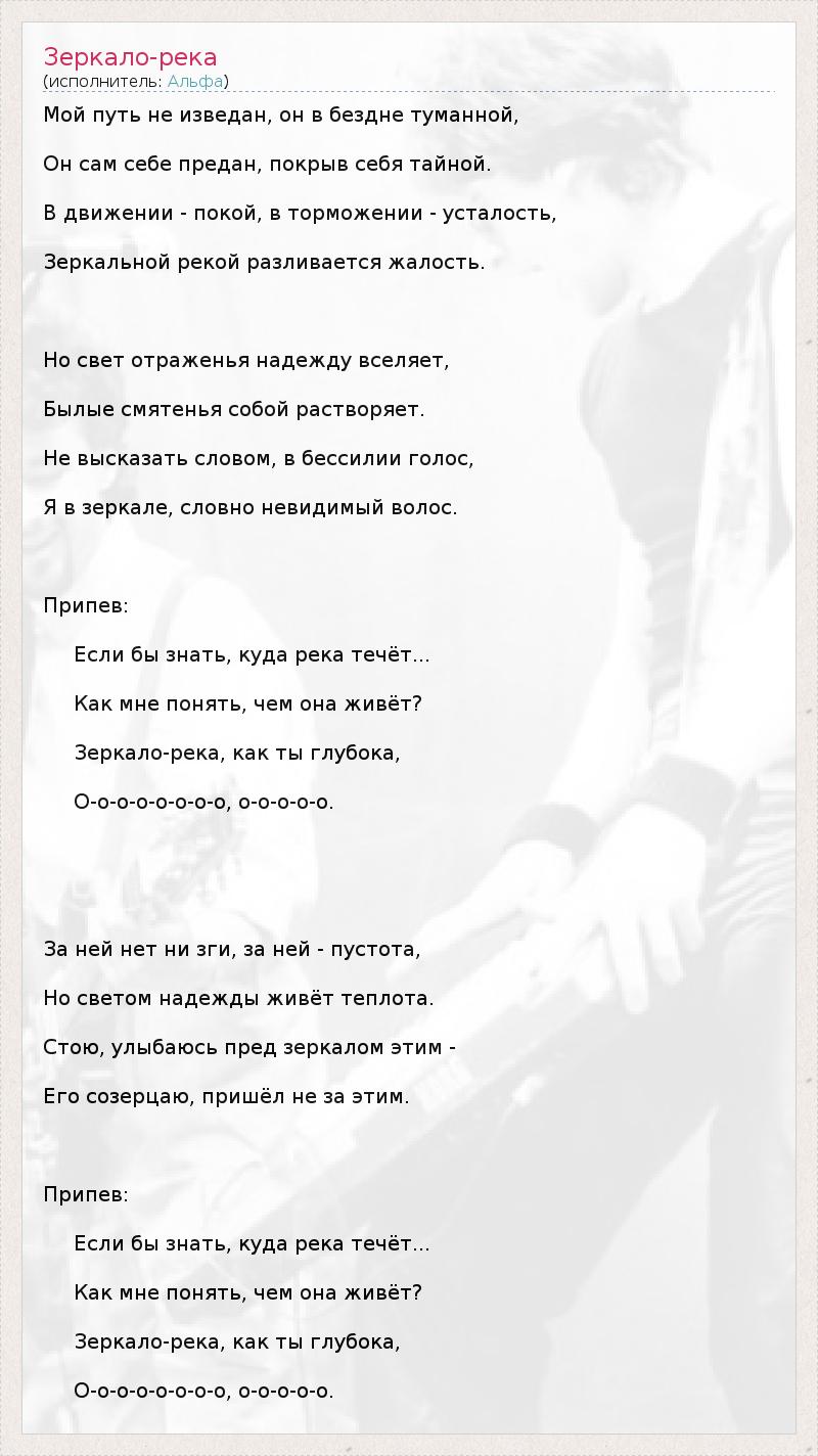 А как ты думаешь, о чем песня "Зеркало-река" ?