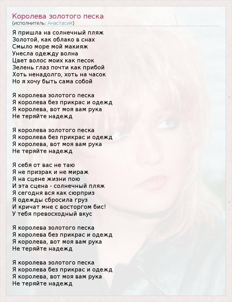 ГлавнаяИсполнителиАнастасияКоролева золотого песка