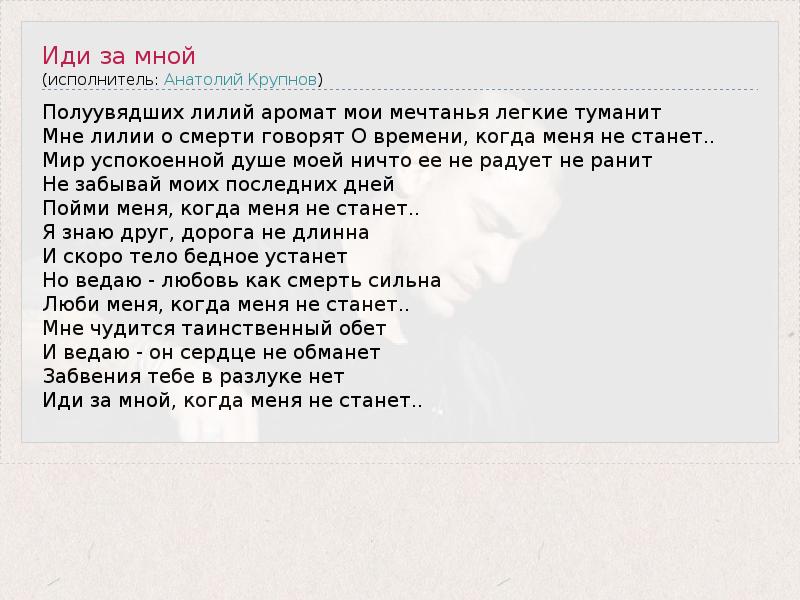 А как ты думаешь, о чем песня "Иди за мной" ?