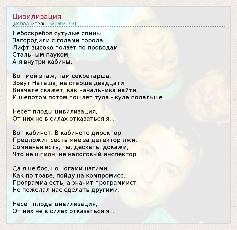 А как ты думаешь, о чем песня "Цивилизация" ?