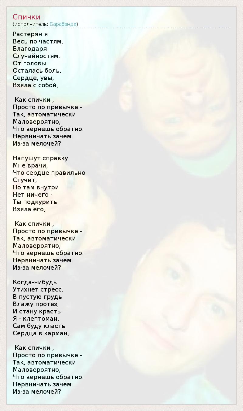 А как ты думаешь, о чем песня "Спички" ?