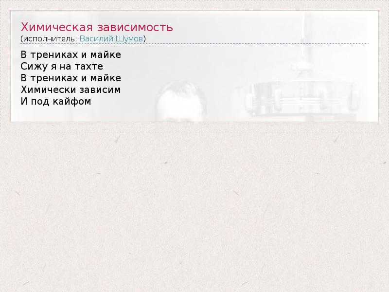 ГлавнаяИсполнителиВасилий ШумовХимическая зависимость
