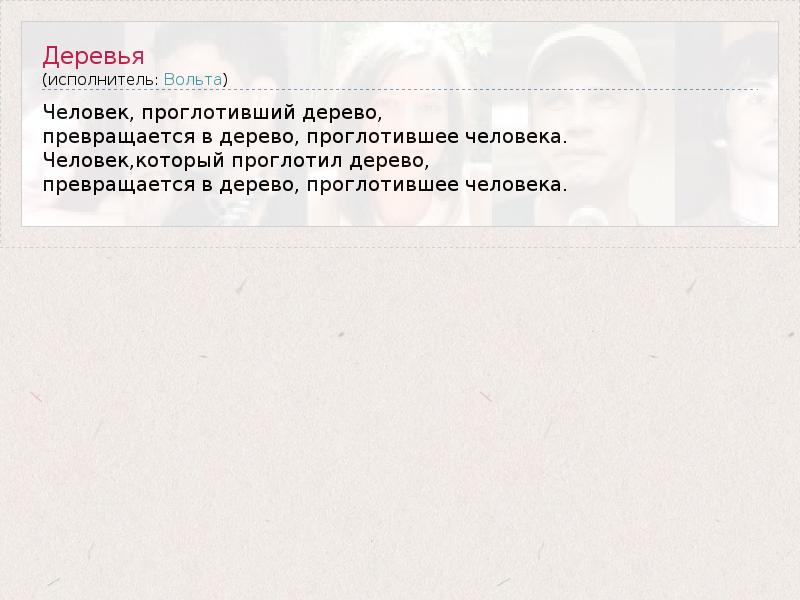 Сплин - Человек и дерево Человек, проглотивший дерево, превращается в дерево, проглотившее человека. Человек,который проглотил дерево, превращается в дерево, проглотившее человека.