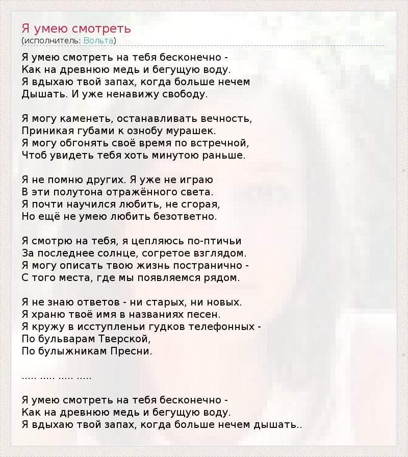 ГлавнаяИсполнителиВольтаЯ умею смотреть